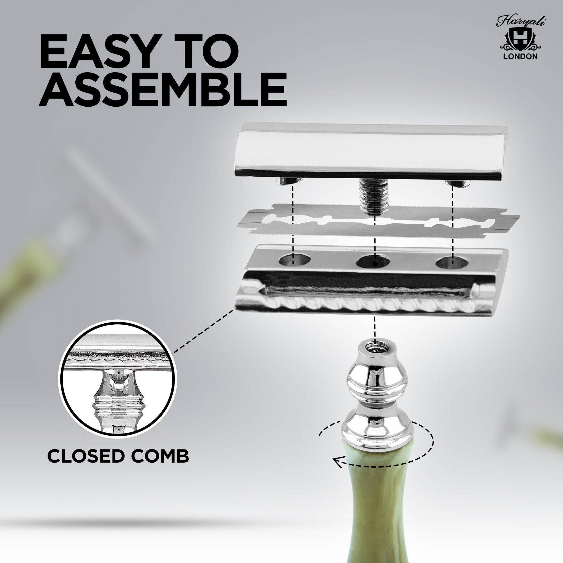 Haryali Rasiermesser mit zwei Klingen, Schildpatt-Horn-Imitation BR1TI