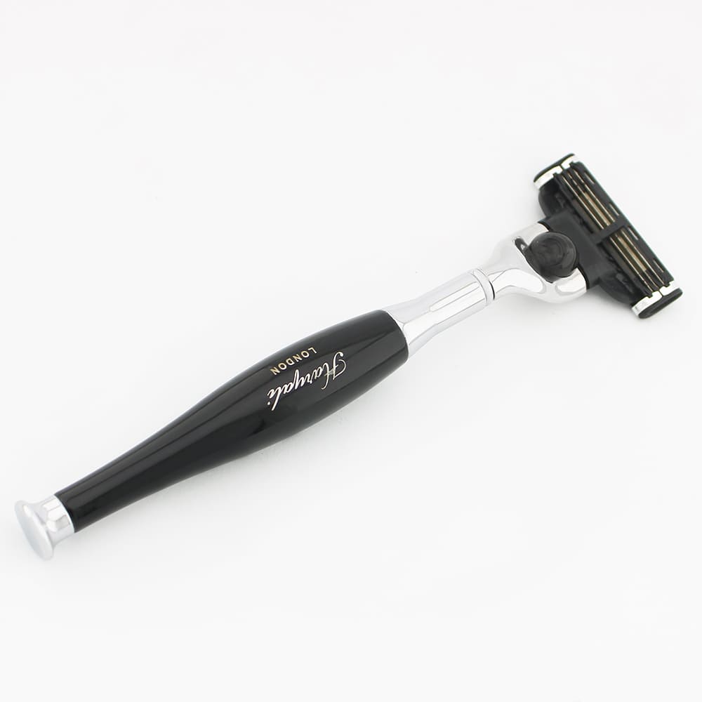 Dieser elegante Rasierer stammt aus unserem Victoria-Sortiment. Er zählt zu den besten Rasierern für Damen, da er bei sorgfältiger Anwendung die Haut nur minimal belastet. Kombinieren Sie diesen schwarzen Rasierer für Damen und Herren mit weiteren Artikeln aus unserer Victoria-Reihe, um Ihr Designer-Rasierset zu vervollständigen.