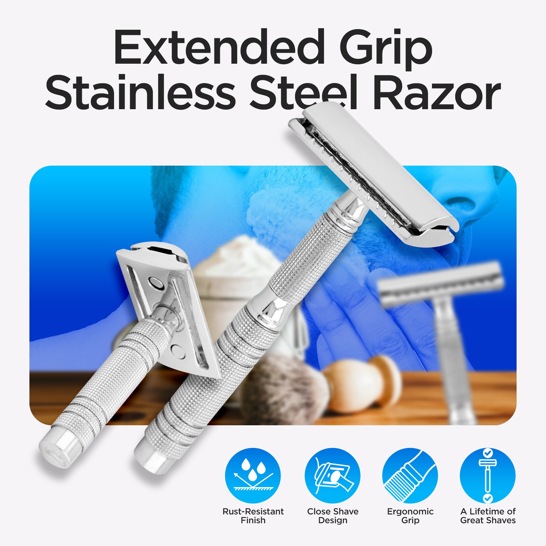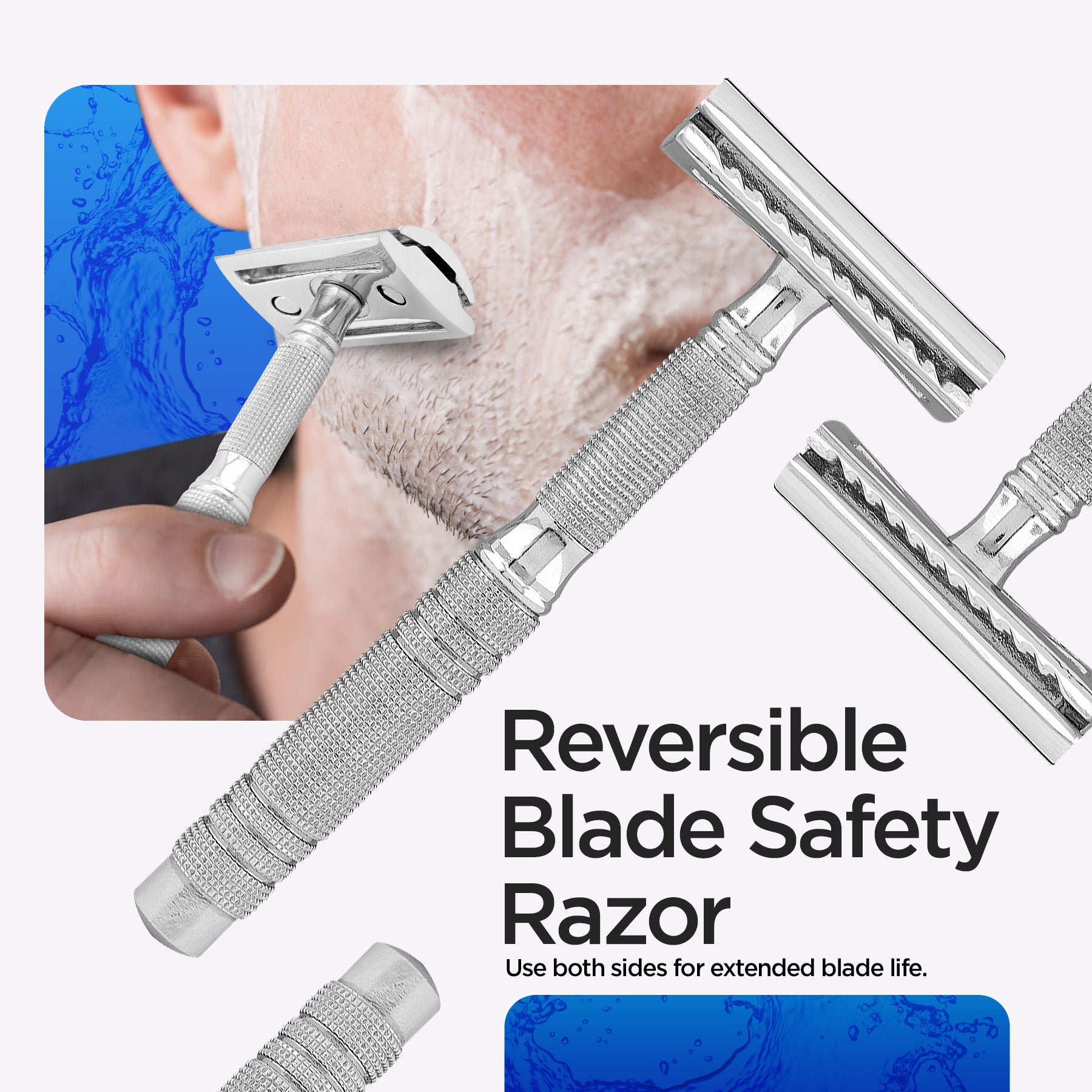 Dies ist ein reisefreundlicher Rasierhobel mit Doppelklinge und einzigartiger Montagefunktion. Er besteht aus drei Teilen, die sich aus Sicherheitsgründen und zur Platzoptimierung leicht zusammen- und auseinanderbauen lassen. Er ist aus Edelstahl gefertigt und verfügt über einen strukturierten Griff für Stabilität und Stabilität beim Rasieren. Der Rasierkopf hat einen geschlossenen Kamm. Der Haryali London Rasierhobel ist mit allen Standard-DE-Rasierklingen kompatibel. Dieser Einklingenrasierer für Männer verfügt über einen Drehmechanismus für einen einfachen Klingenwechsel.